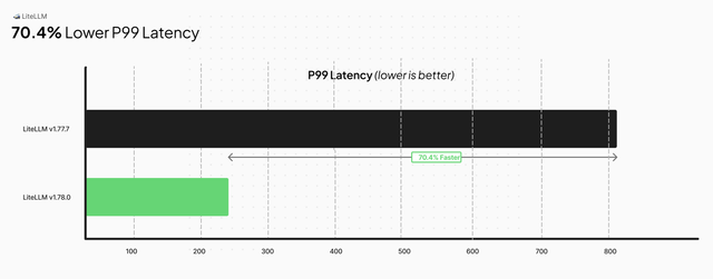| Median latency | 2,200 ms | 59 ms | −97% (~37× faster) |